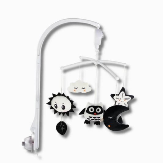 💕Le mobile musical noir et blanc est particulièrement adapté aux tout-petits. Les contrastes stimulent la vue de bébé dès les premiers mois.